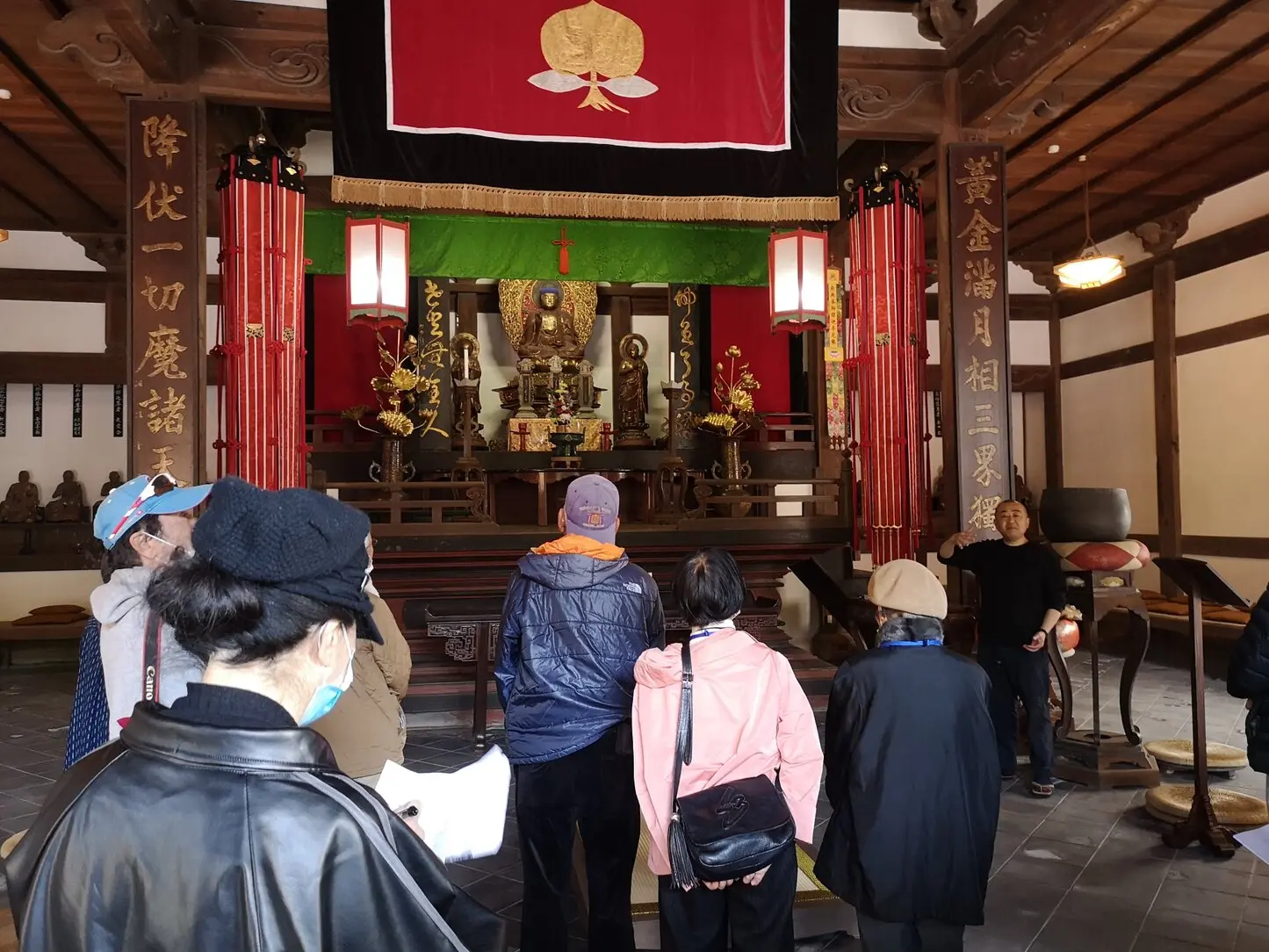 ~周南市湯野地区ウォーキング、湯野・山田家本屋前集合解散、当会三戸氏によるガイド(楞厳寺はご住職、山田家本屋は当会小沢氏説明)