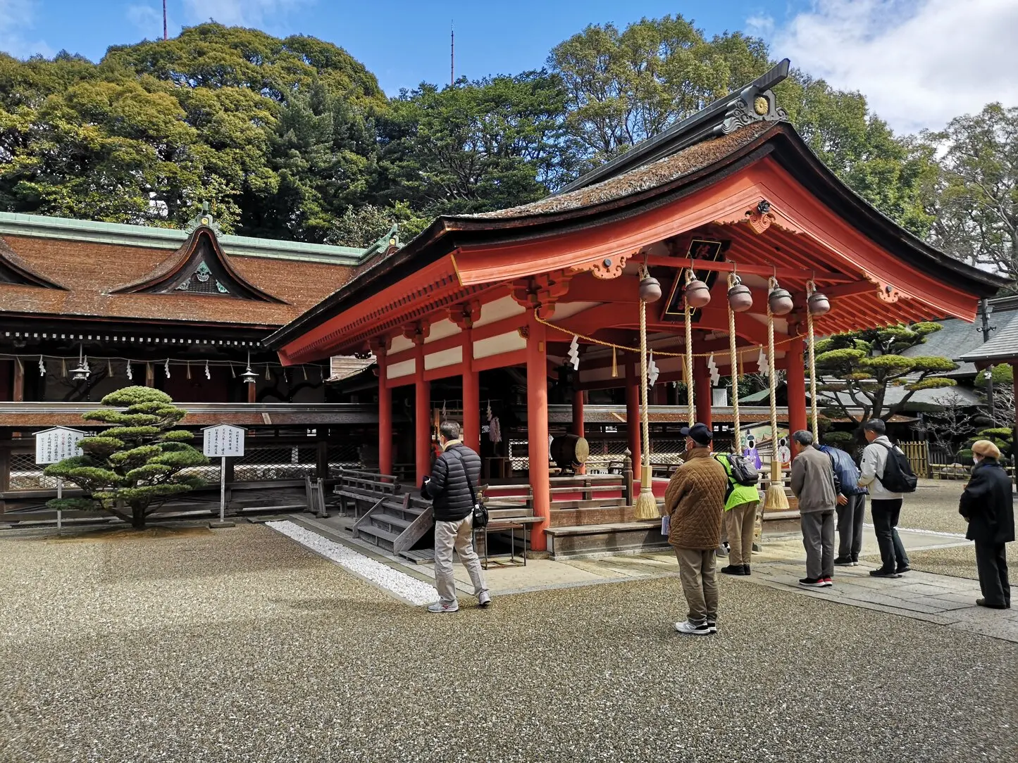 令和8年 3月14日(土)「四境戦争」ゆかりの地を巡るバス旅行。今回は「小倉口」に行ってきました。ガイドに下関観光ガイドの会、平松さんをお迎えして詳しい解説をいただきました。小倉の延命寺では、奇兵隊の位牌を拝観させていただき、また、小倉藩小笠原家菩提寺の福聚寺では、突然のお願いにも関わらず副住職様に詳しい解説をいただくなど、ご協力いただき、お世話になりました。上の写真は、北九州市門司、甲宗八幡神社での一コマです。